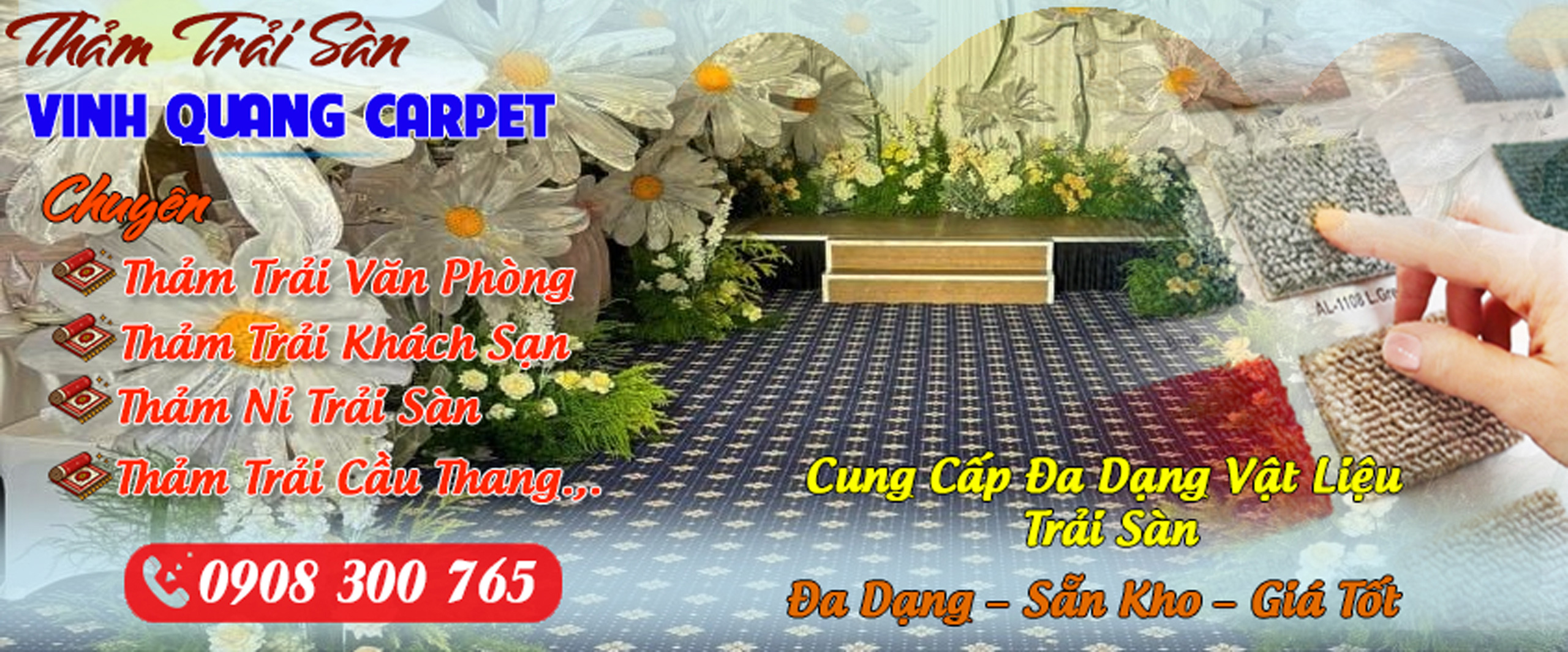 Chuyên cung cấp thảm nỉ trải sự kiện với nhiều chủng loại hoa văn, màu sắc từ các thương hiệu uy tín giá thành cạnh tranh